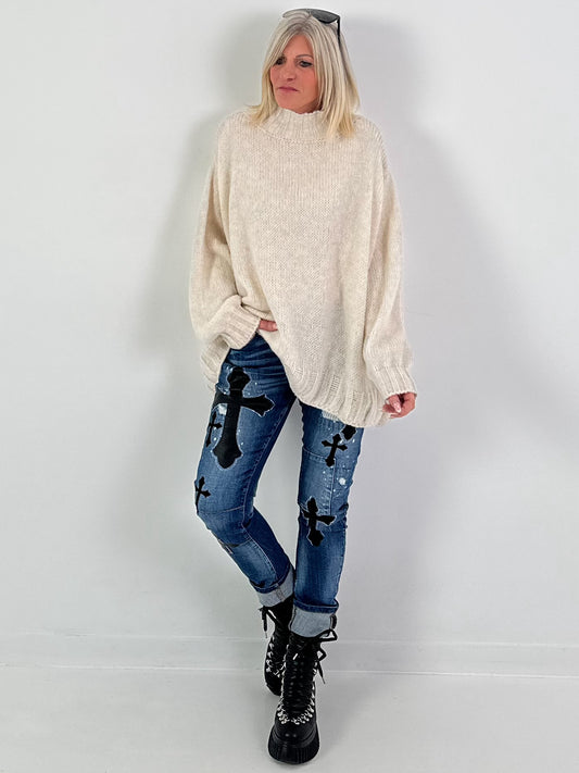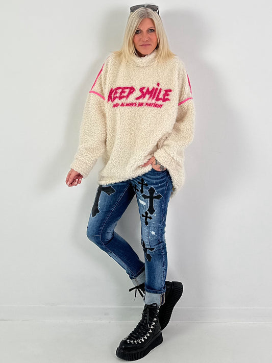 Teddy sweater turtleneck model "KEEP SMILE" - ecru