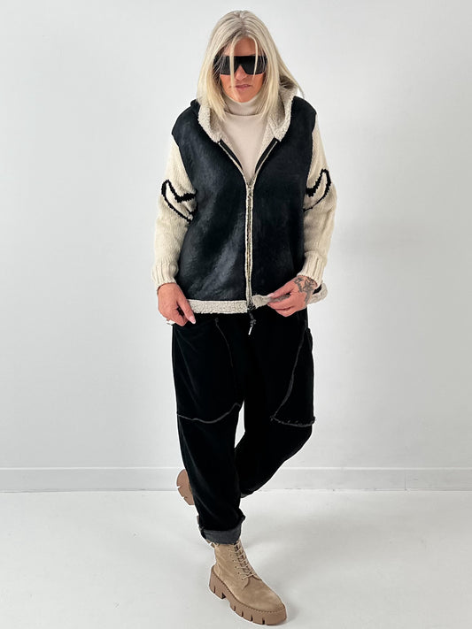 Lambskin nappa imitation jacket with knitted sleeves model "Jana" - black
