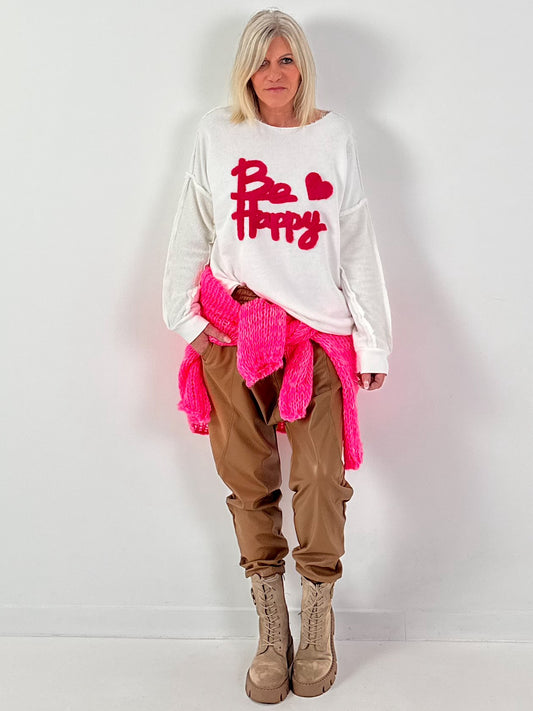 Sweatshirt Modell "Happy Fluff" - weiss-pink