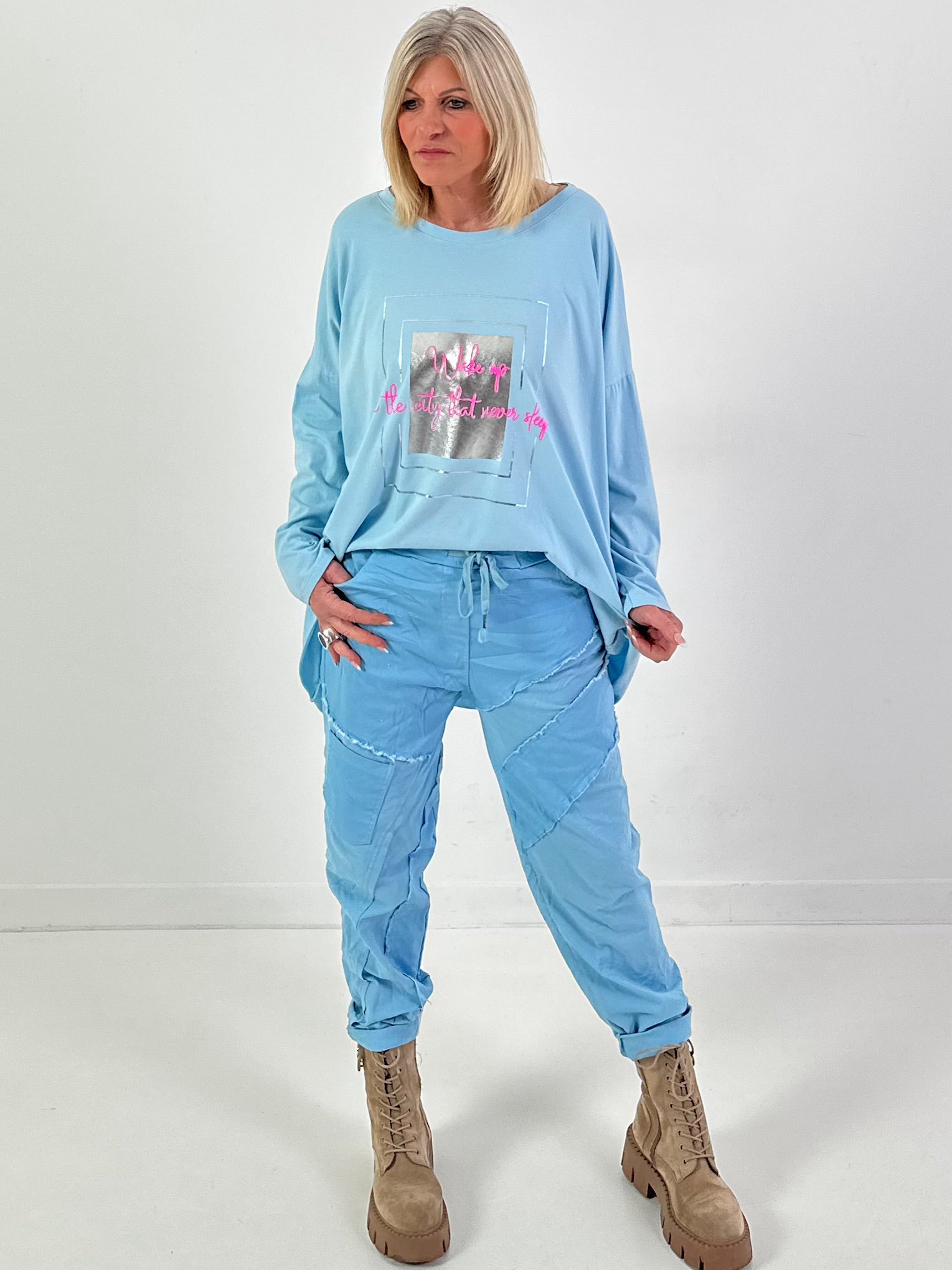 Oversized Shirt Modell "wake up in a City that never sleeps" hellblau