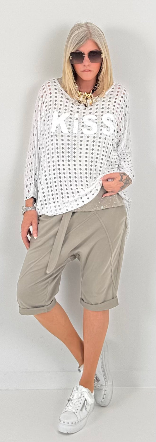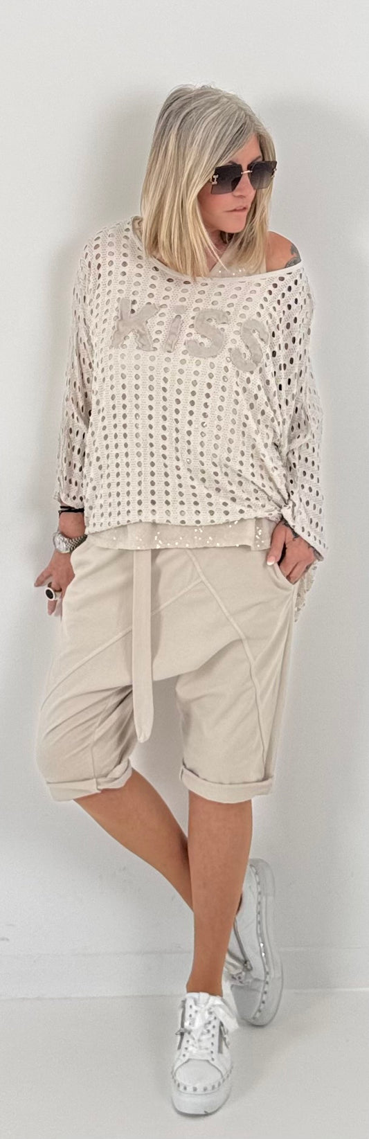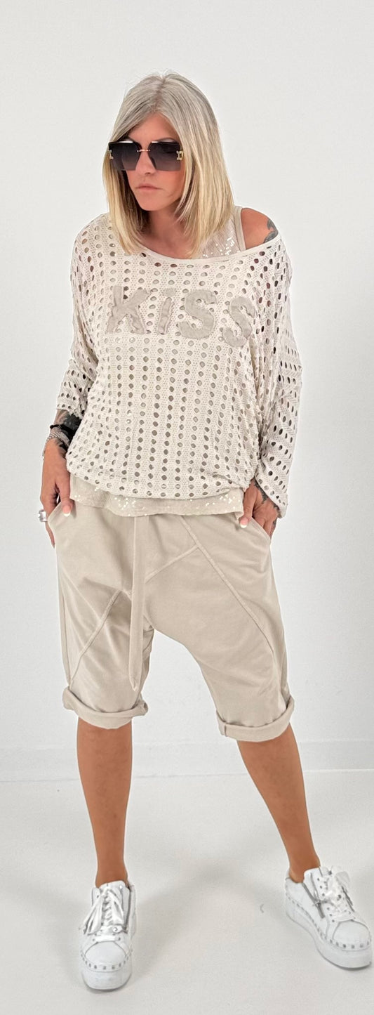 Oversized stonewashed sweatshirt model "Glück..." - beige
