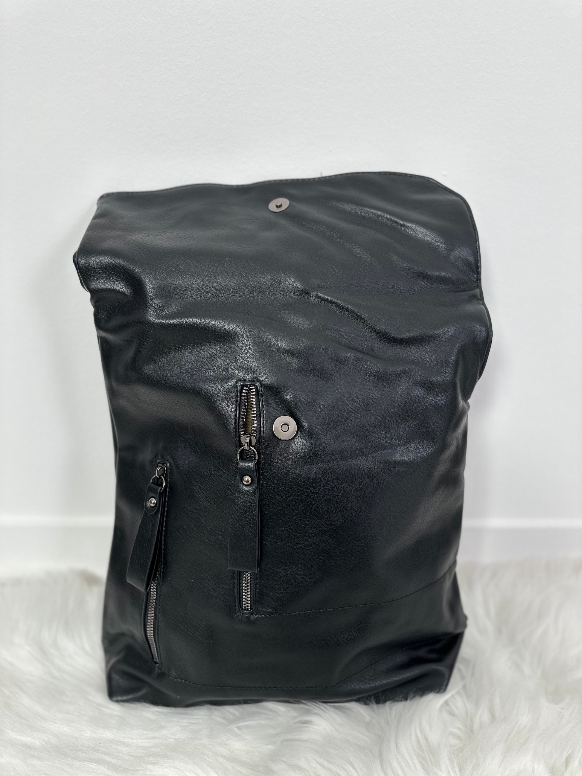 Simple, smart, and perfectly suited for everyday use. The "City Fold" combines urban chic with functionality. The soft, leather-look material exudes elegance, while the folded-over flap and silver zippers create a modern aesthetic. Multiple exterior compartments offer quick access, while the spacious main compartment with additional pockets keeps everything organized. Adjustable straps and a short carrying handle ensure the backpack remains versatile – whether for the office, a city stroll, or a weekend getaway.