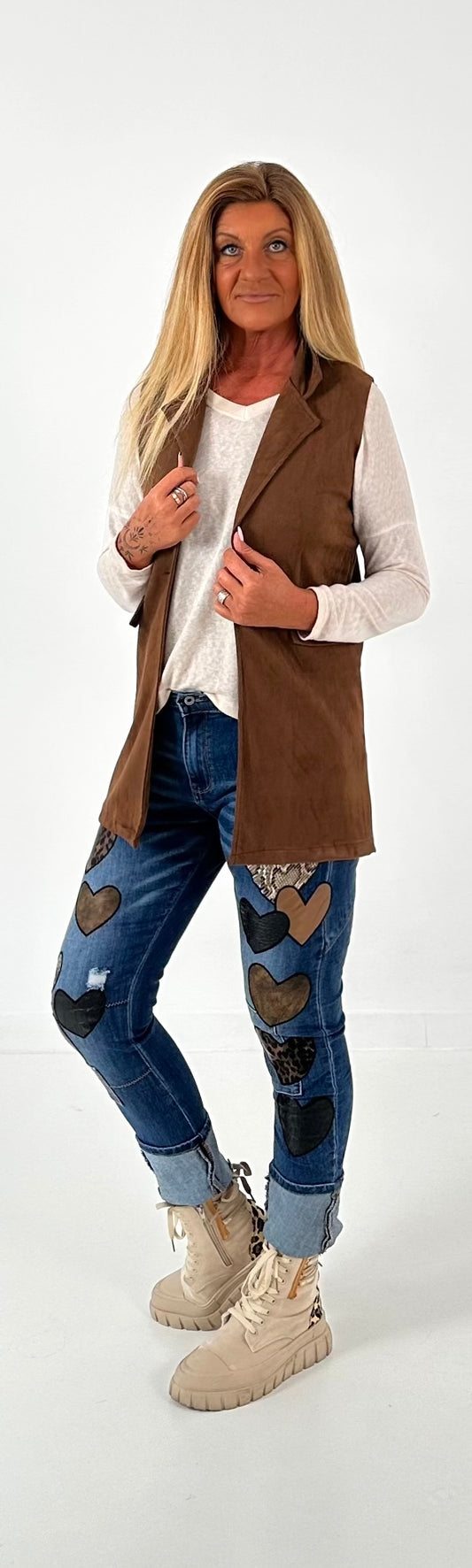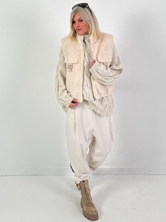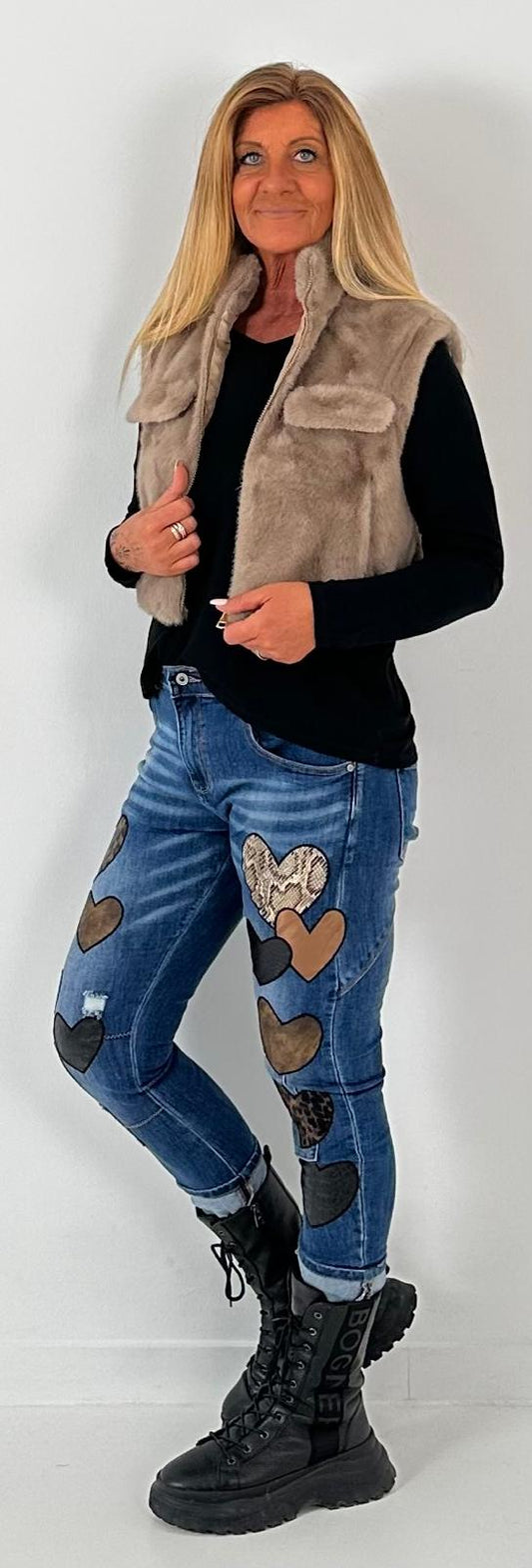 Vest with sequins and denim insert model "Smilla" - beige-denim
