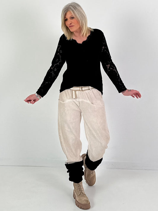 Ribbed knitted leg warmer - beige