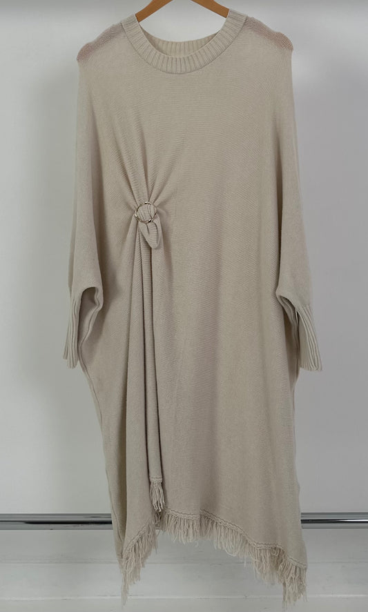 Stretch belt with silver buckle - beige