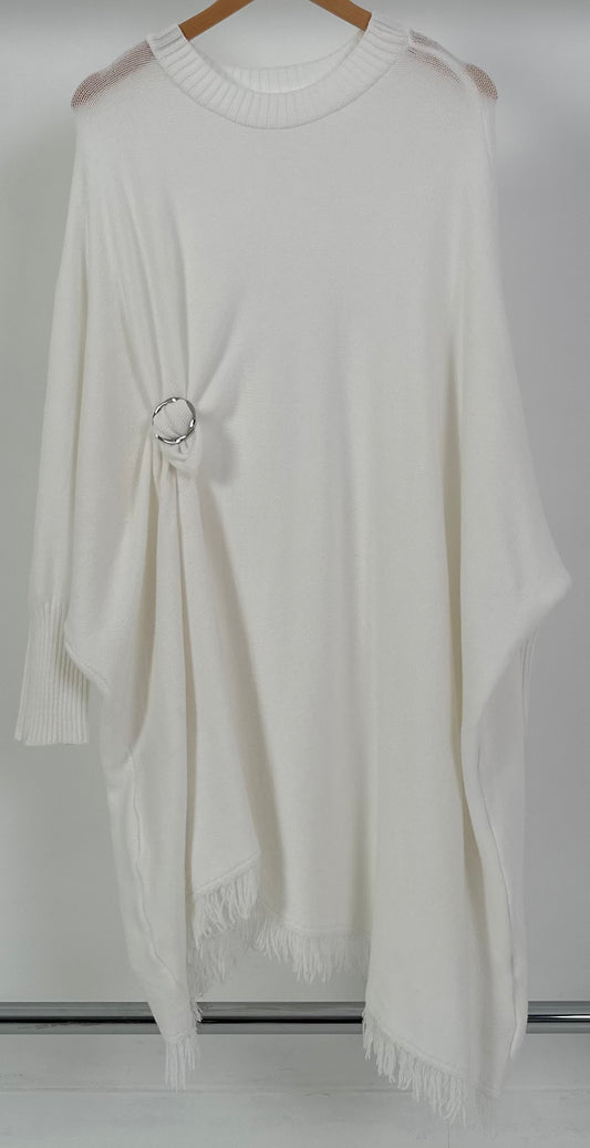 Stretch belt with silver buckle - white