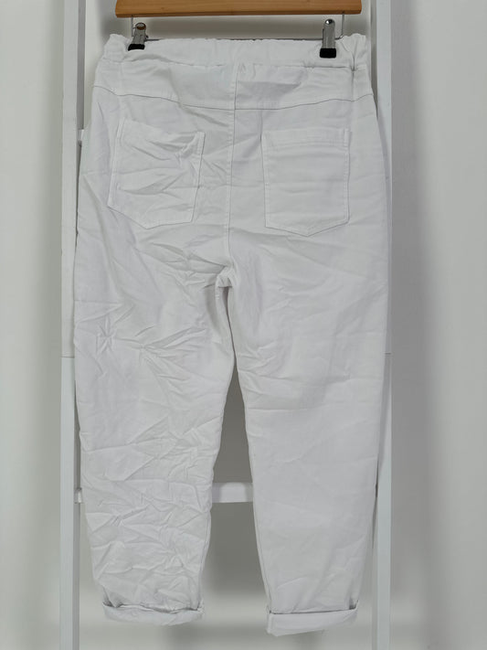 Baggy trousers model "Button-Belt" - white (available from approx. 12.12.25)