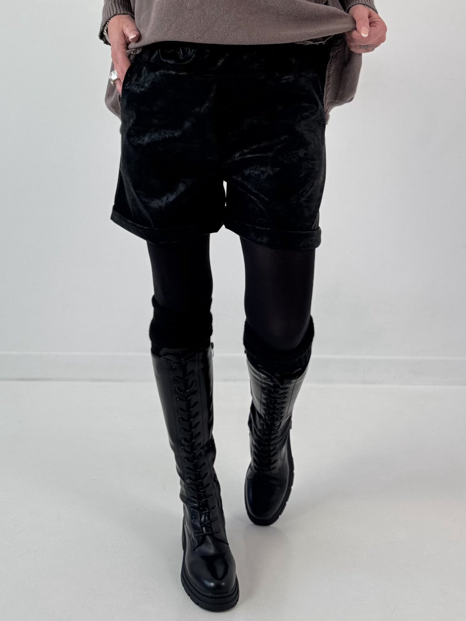 These stylish shorts in iridescent leather look are a real eye-catcher and add a modern, sophisticated touch to any outfit. The soft, slightly stretchy material ensures exceptional comfort, while the elegant finish instantly elevates the look – perfect for trendy casual styles or special occasions.