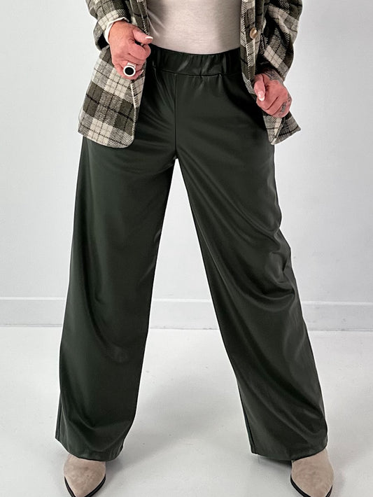 Leather-look trousers, model "Smooth Faux" - olive