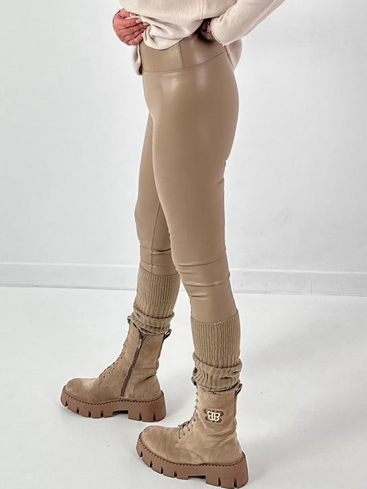 Leather-look leggings, model "Matte Move" - taupe