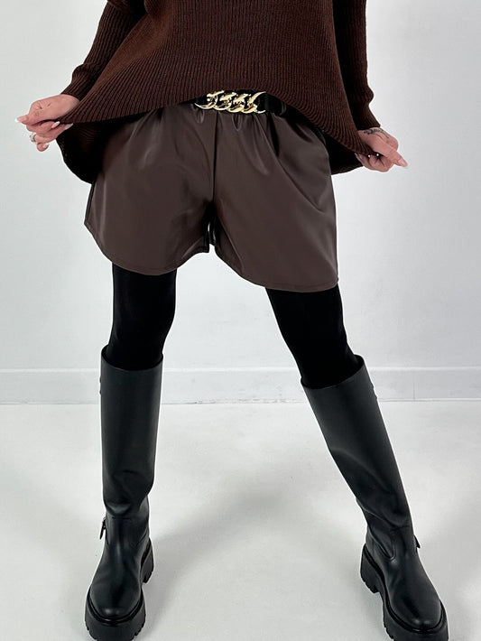 Leather-look shorts, model "Chain Affair" - mocha