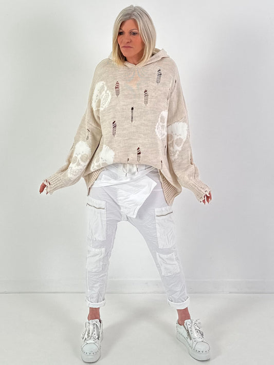 Strick-Hoodie Modell "Broken" - beige-weiss