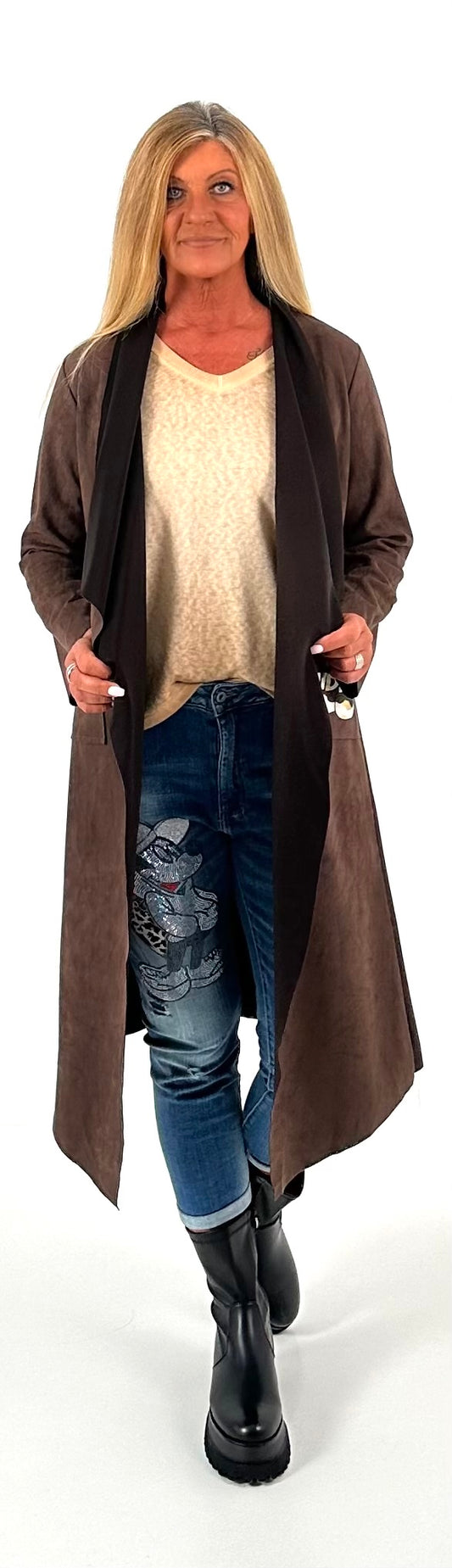 Second choice washable leather coat, model "Hidden Charms" - mocha