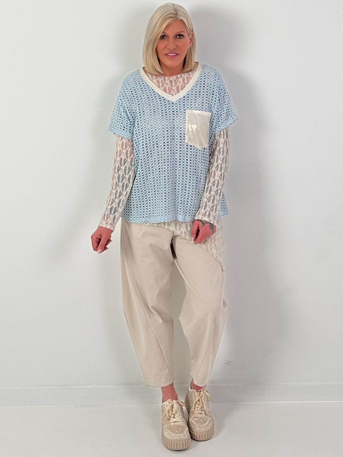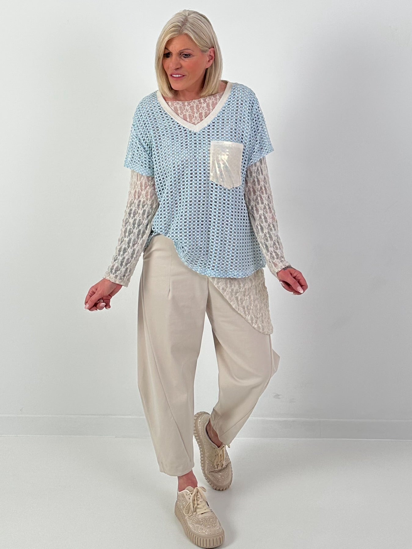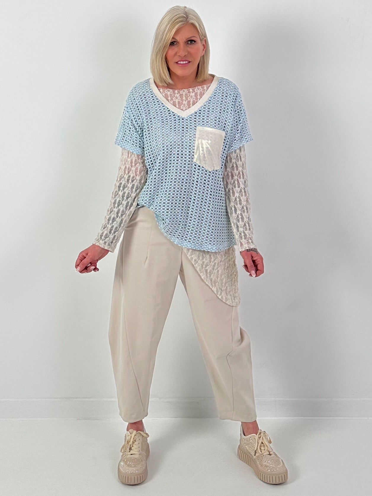 Häkelshirt mit V-Ausschnitt - hellblau