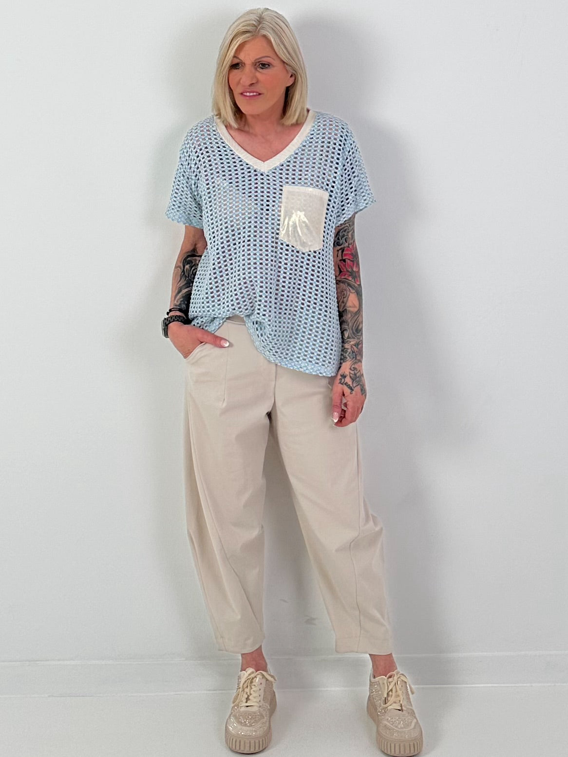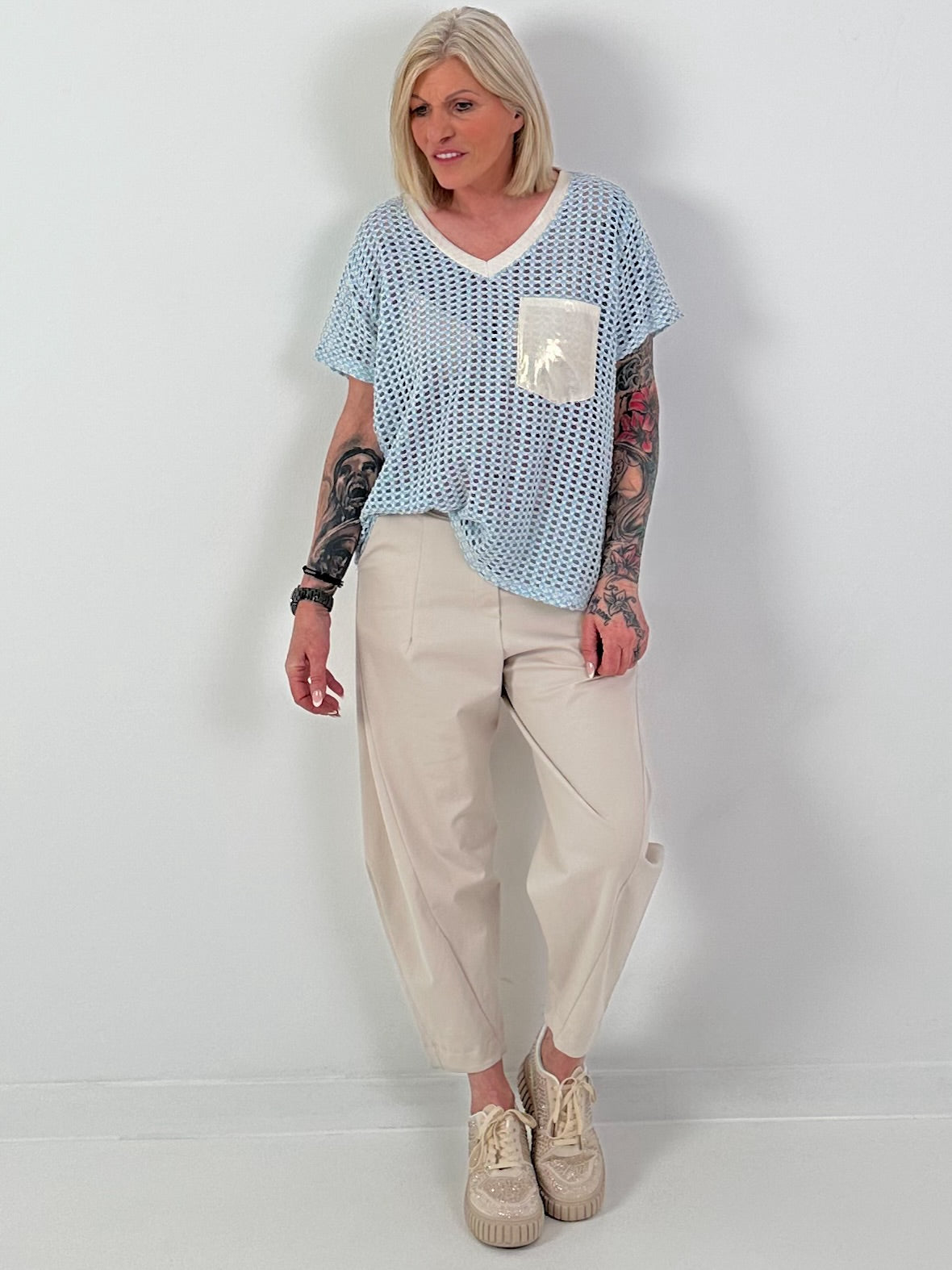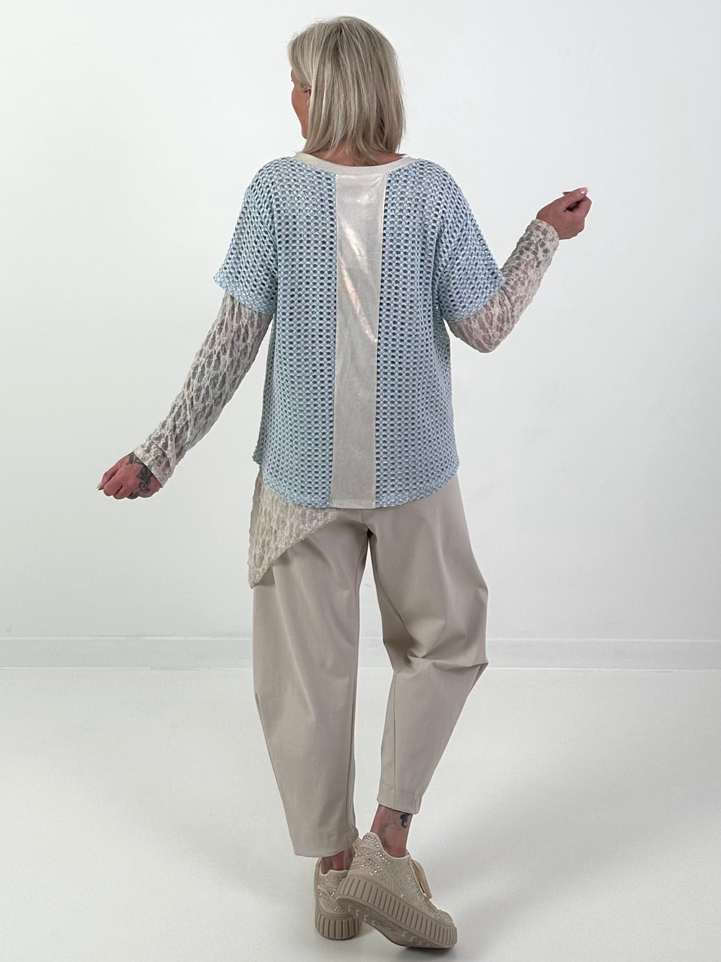 Häkelshirt mit V-Ausschnitt - hellblau