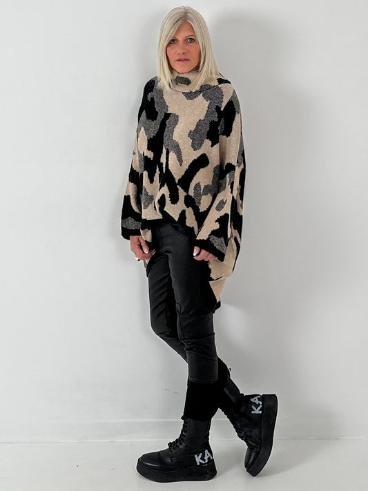 Reversible knitted scarf model "Amandra" - anthracite/beige