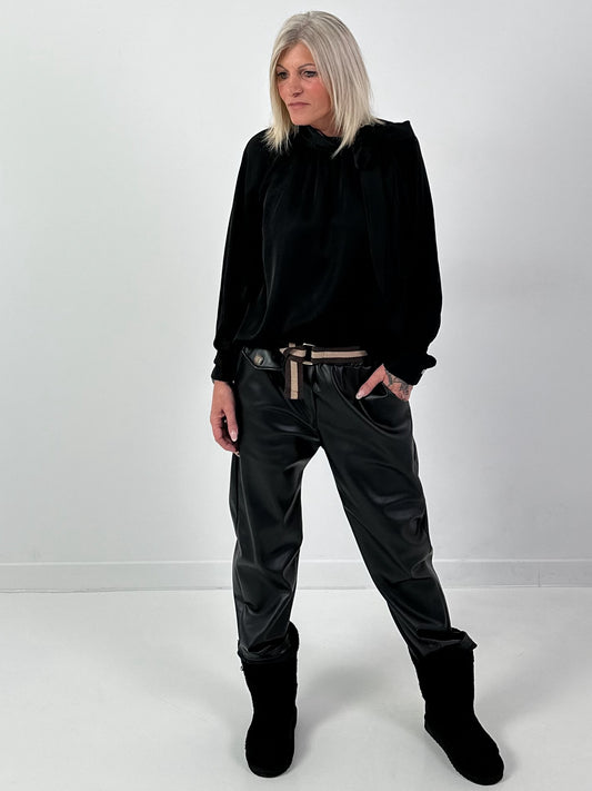Tunika mit seitlicher Schleife Modell "Veloura" - schwarz