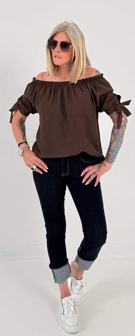 Tunika mit seitlicher Schleife Modell "Veloura" - mokka