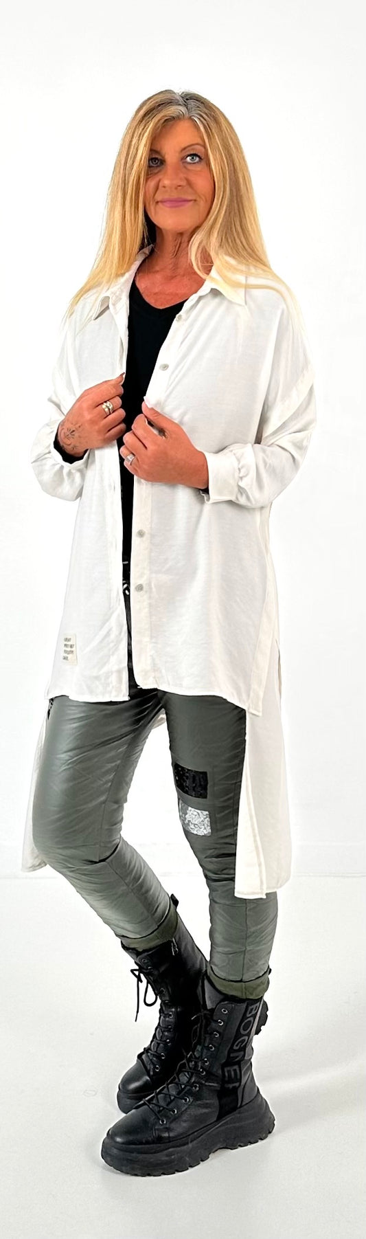 Tunika mit seitlicher Schleife Modell "Veloura" - oliv