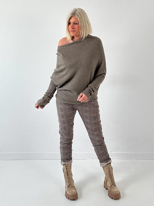 Baggy Hose Modell "Button-Belt" - hellgrau ( lieferbar ab ca. 12.12.25)