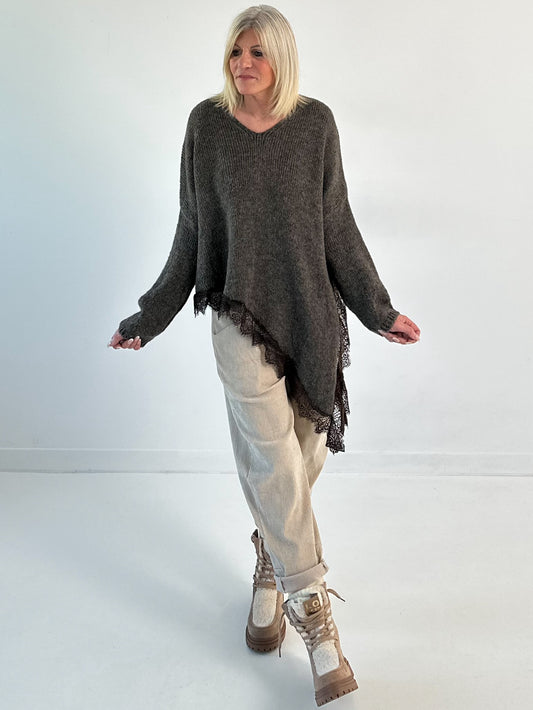 Asymmetrisches Shirt Modell "Lace Layer" - beige ( lieferbar ab ca. 11.12.25)