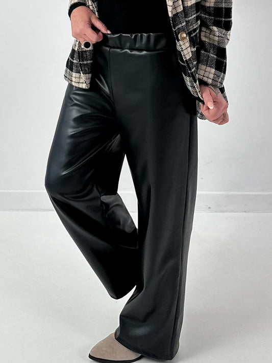 Broek in lederlook, model "Smooth Faux" - olijfgroen