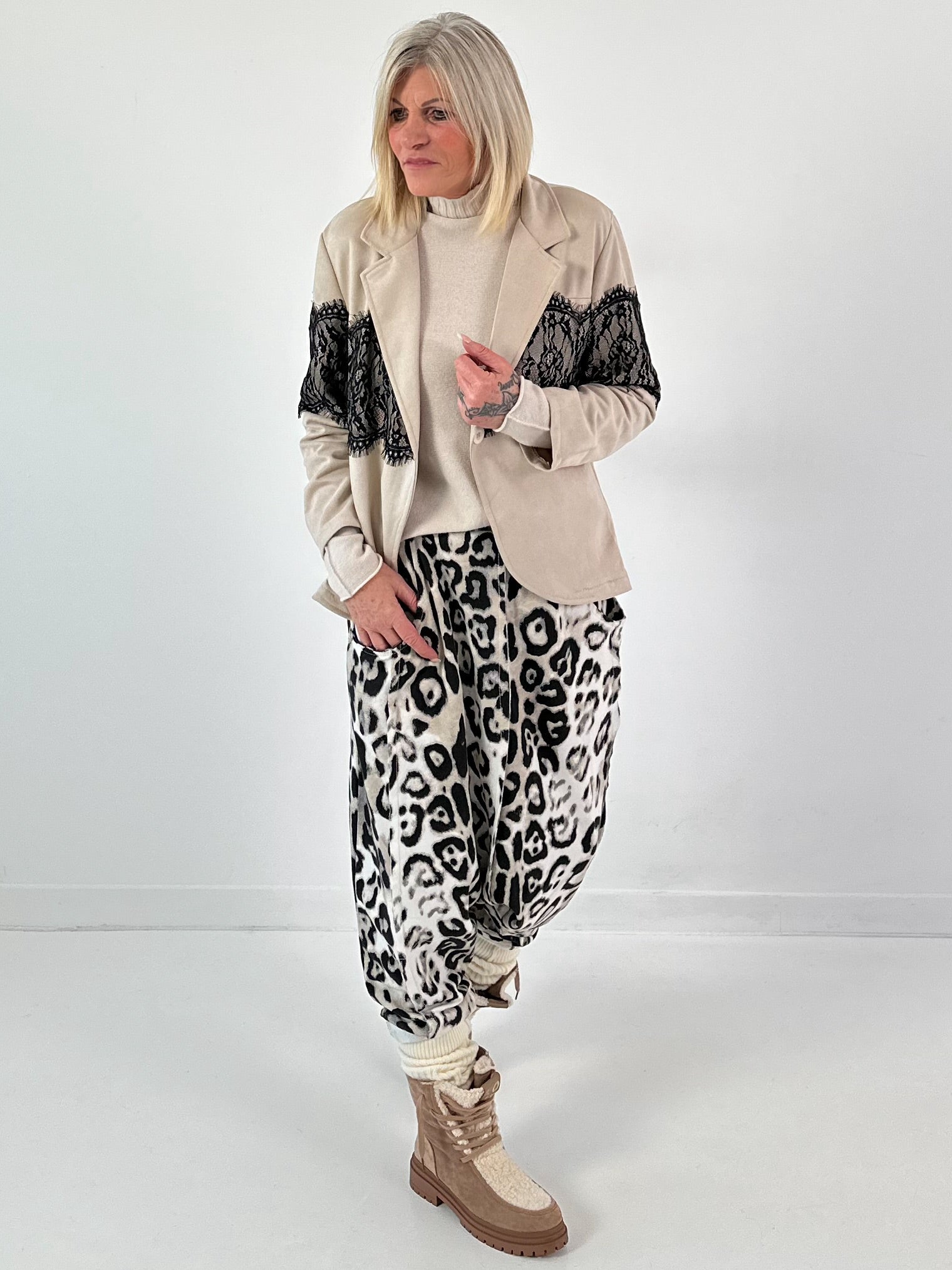 Suède-look blazer model "Lace Line" - beige