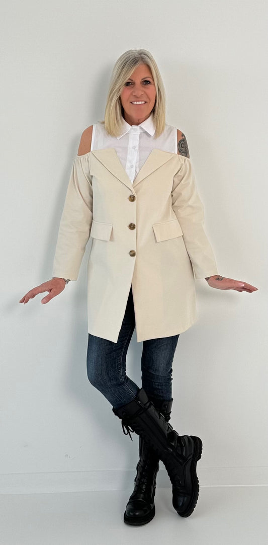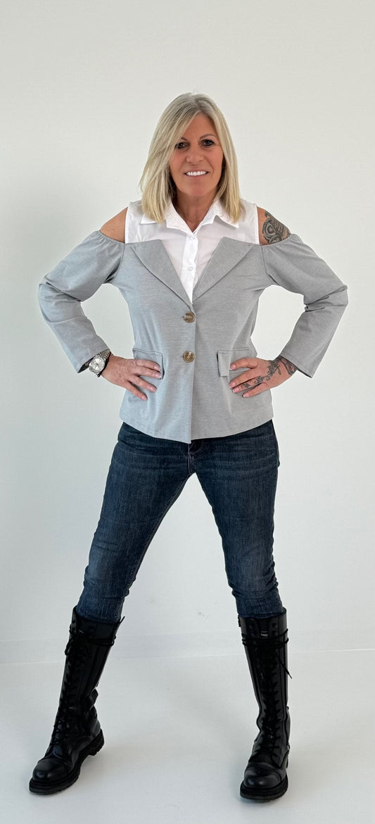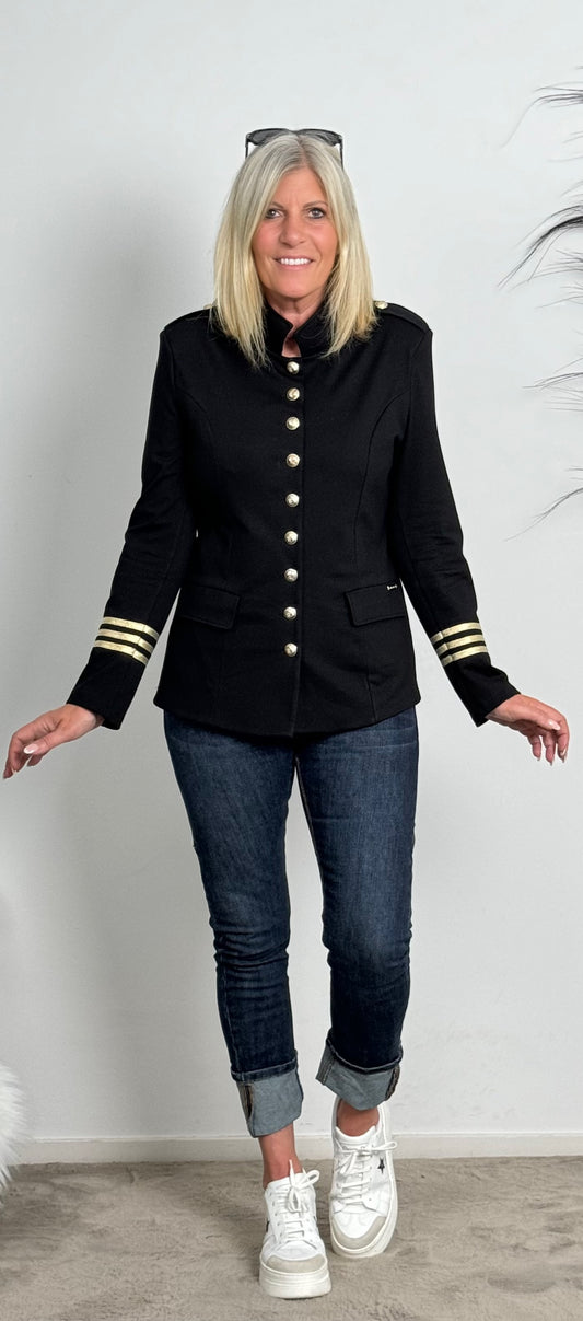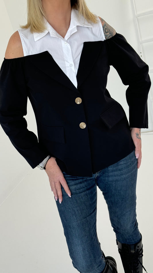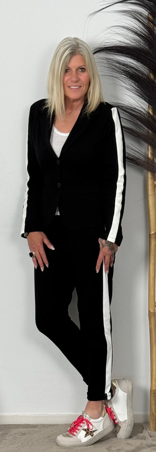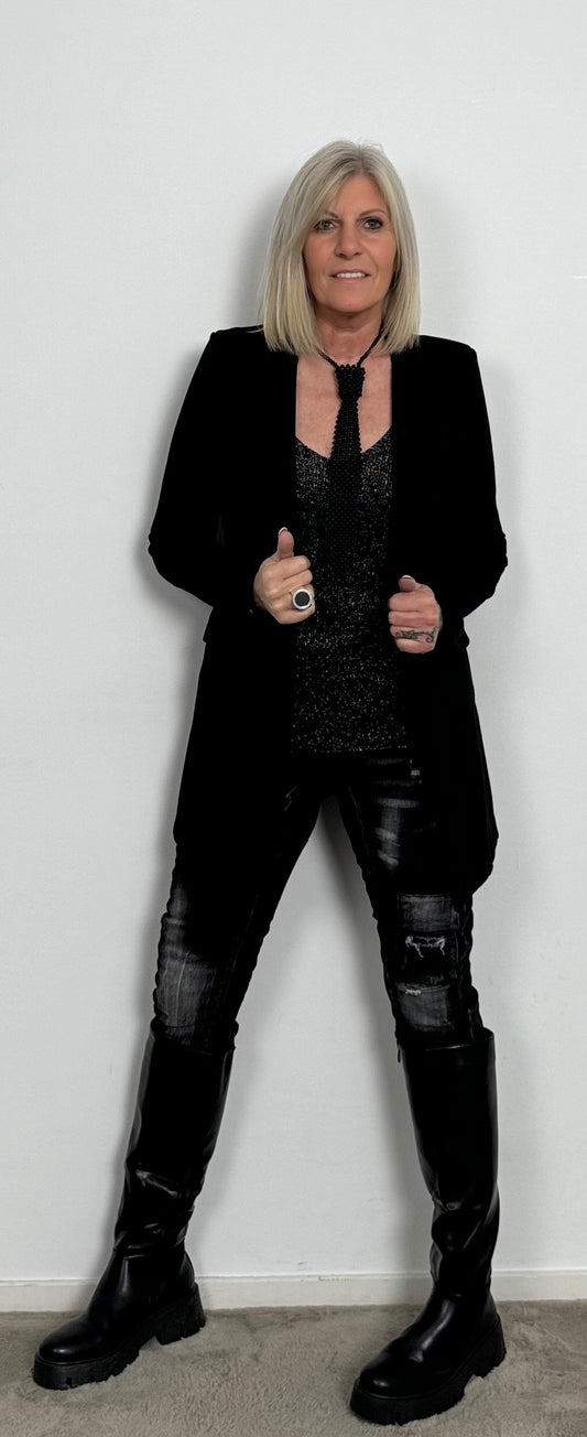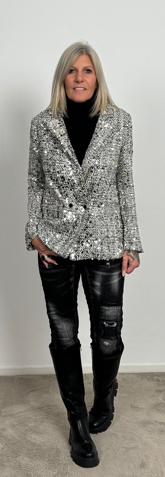 Gestructureerde bouclé blazer met pailletten modelnaam "Cloé" - zwart en wit