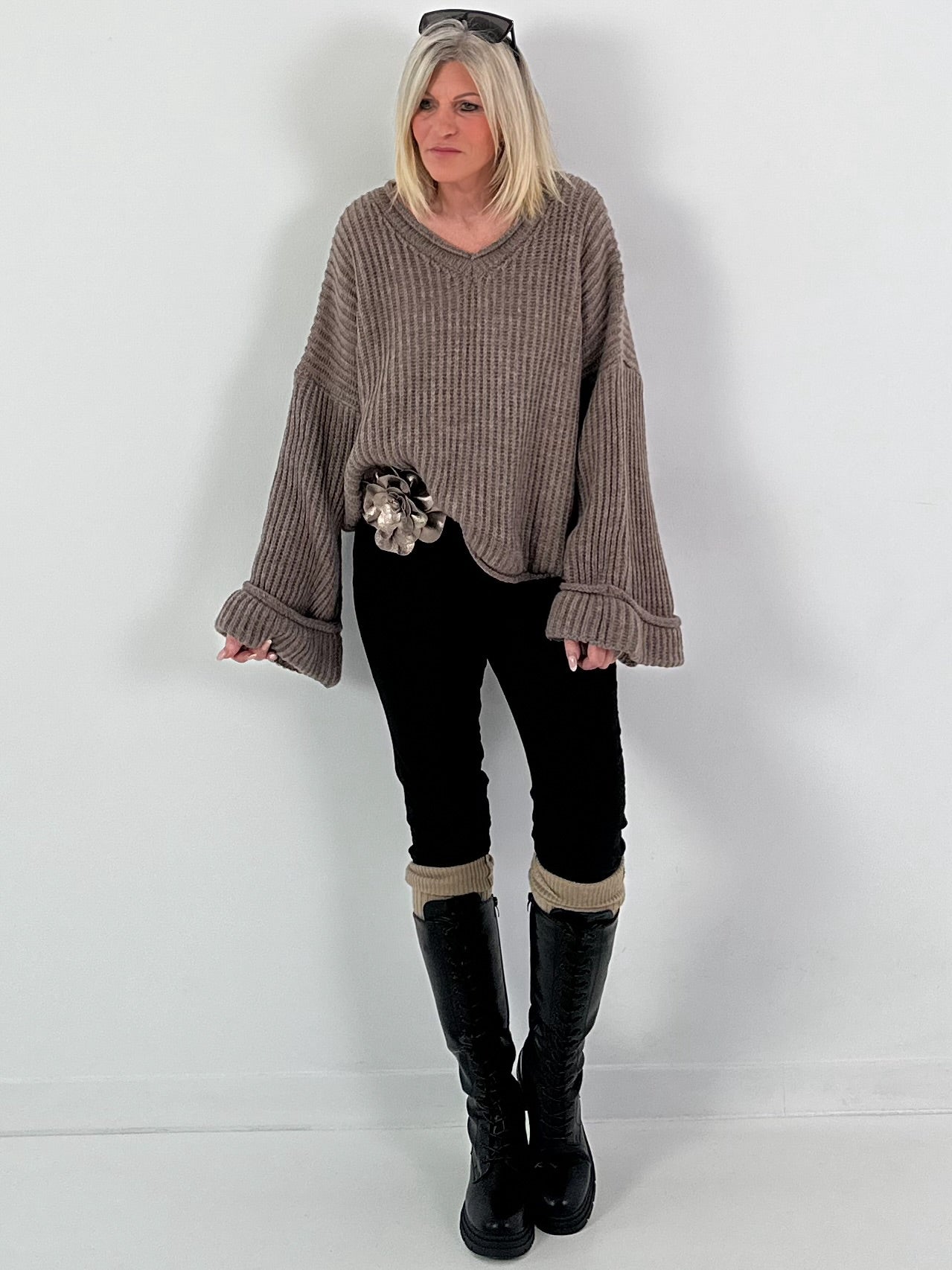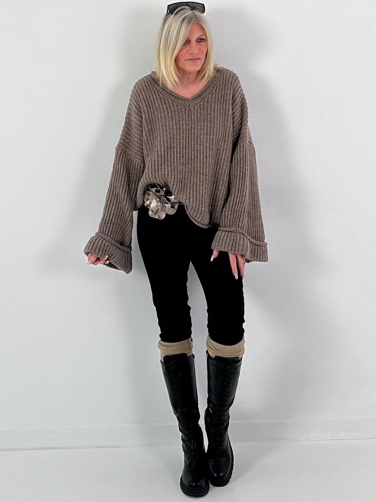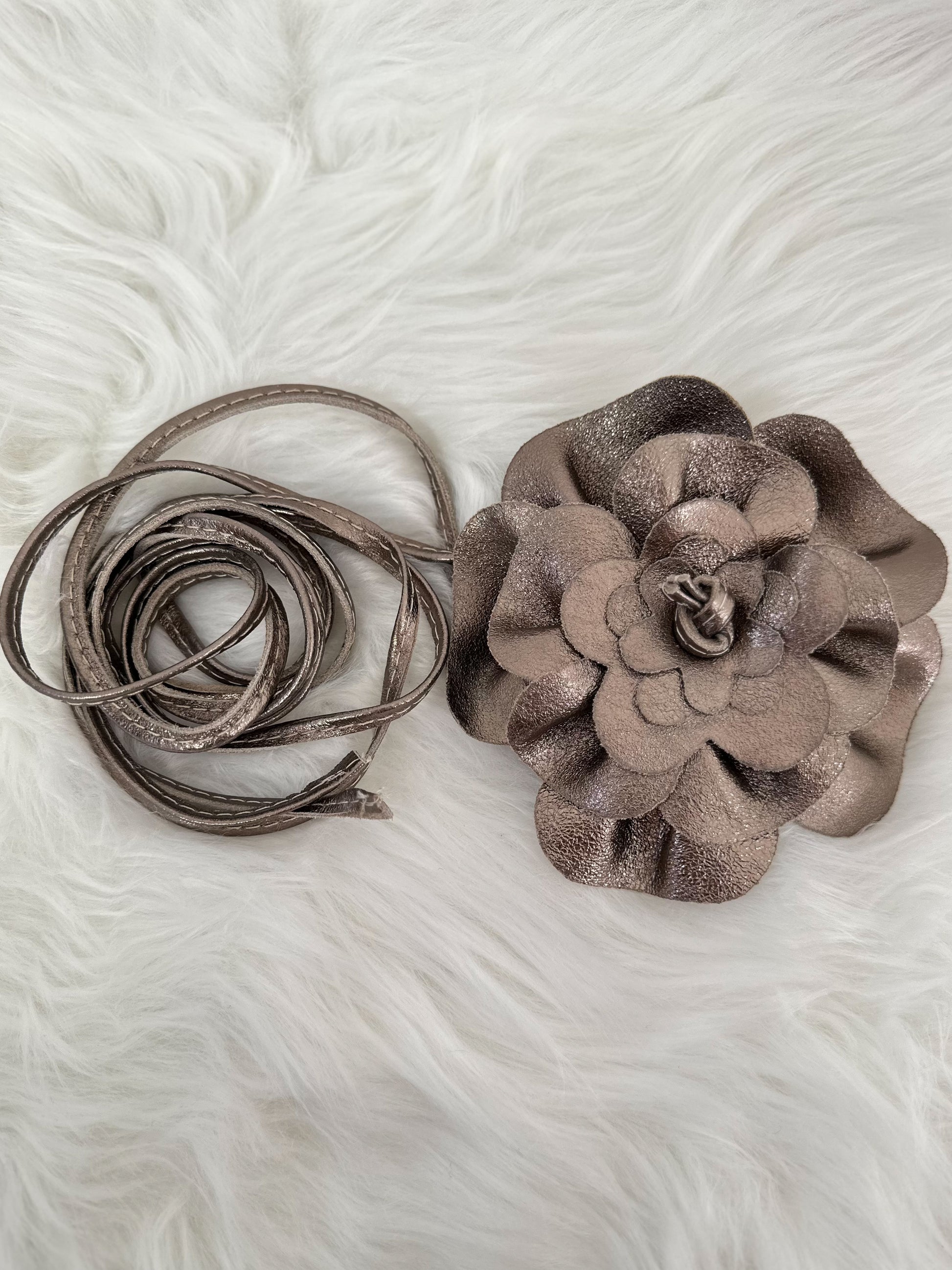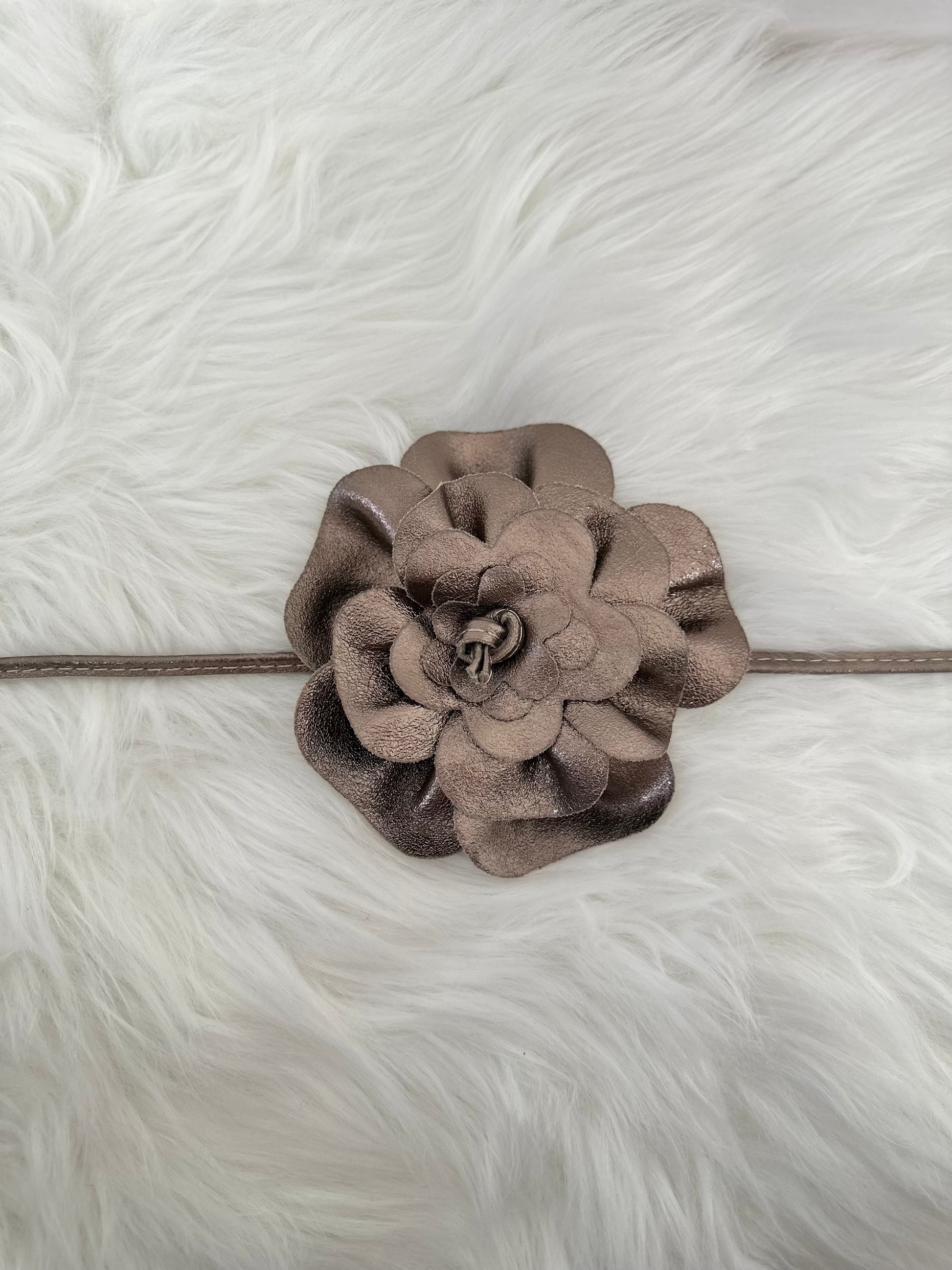 Strikceintuur model "Floral Flow" - brons