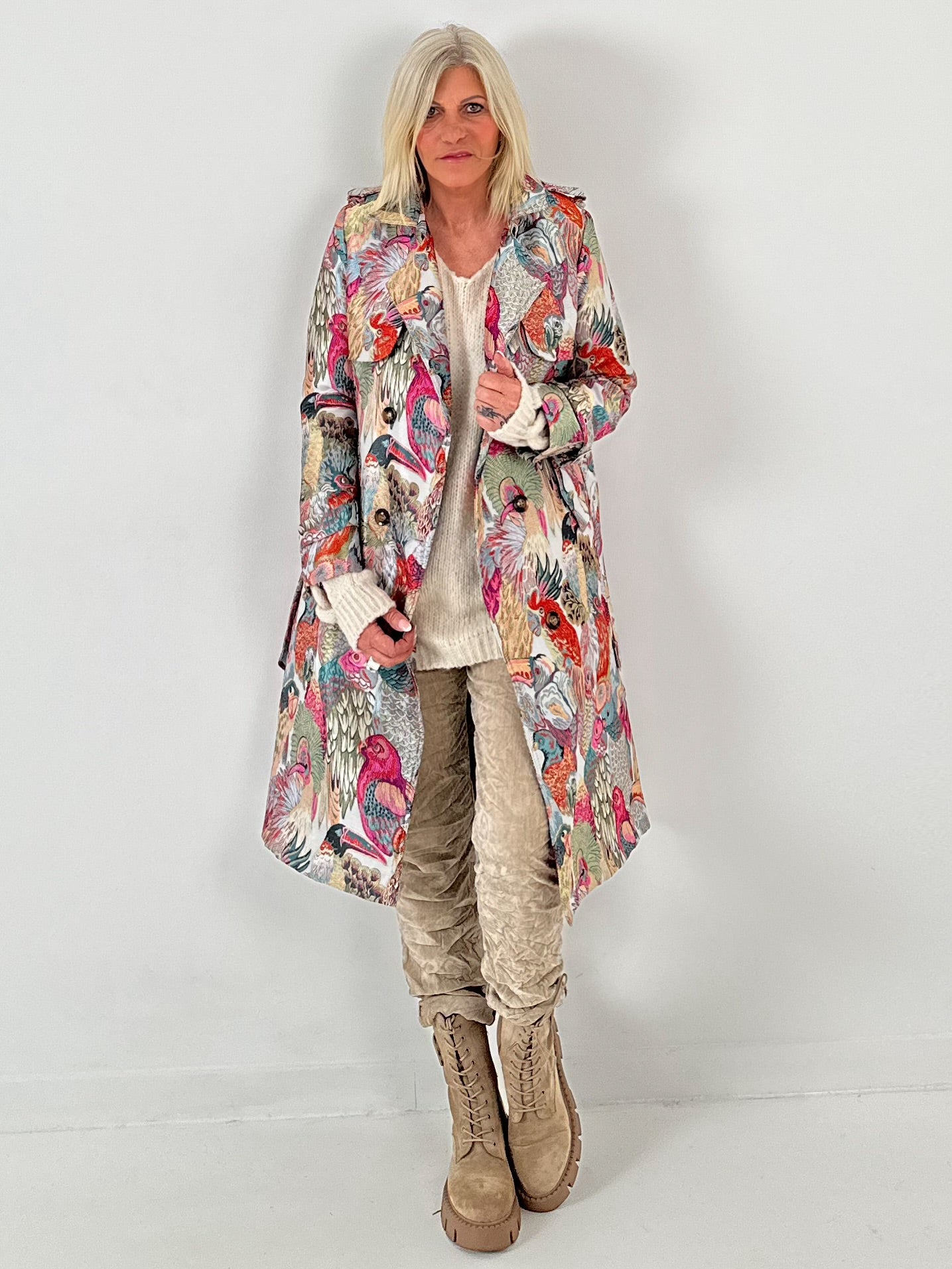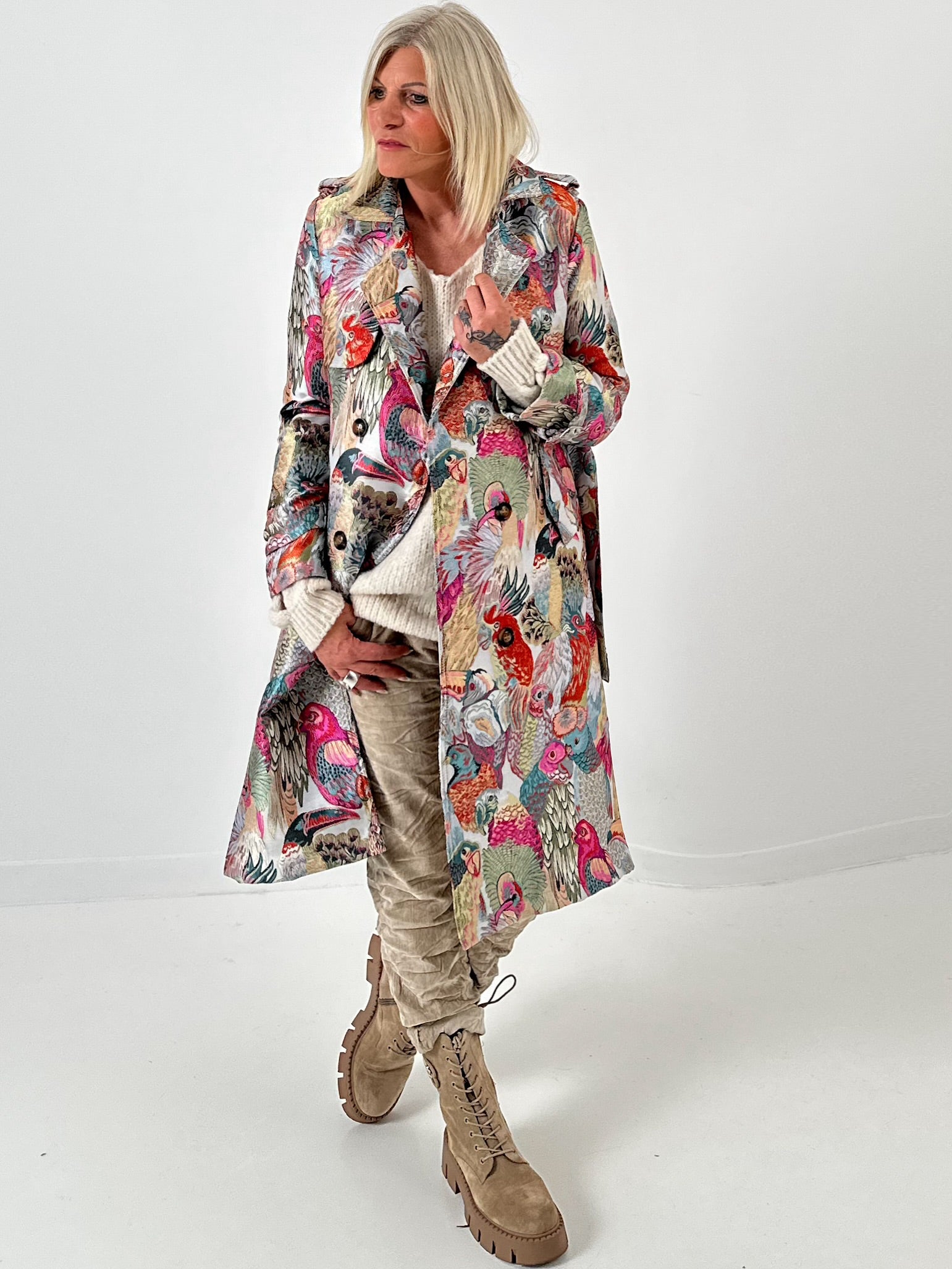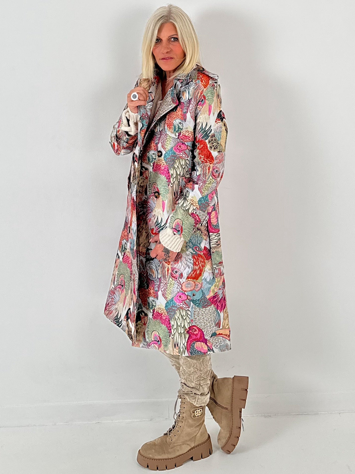 Brokaatjas model "Birds of Paradise" - veelkleurig