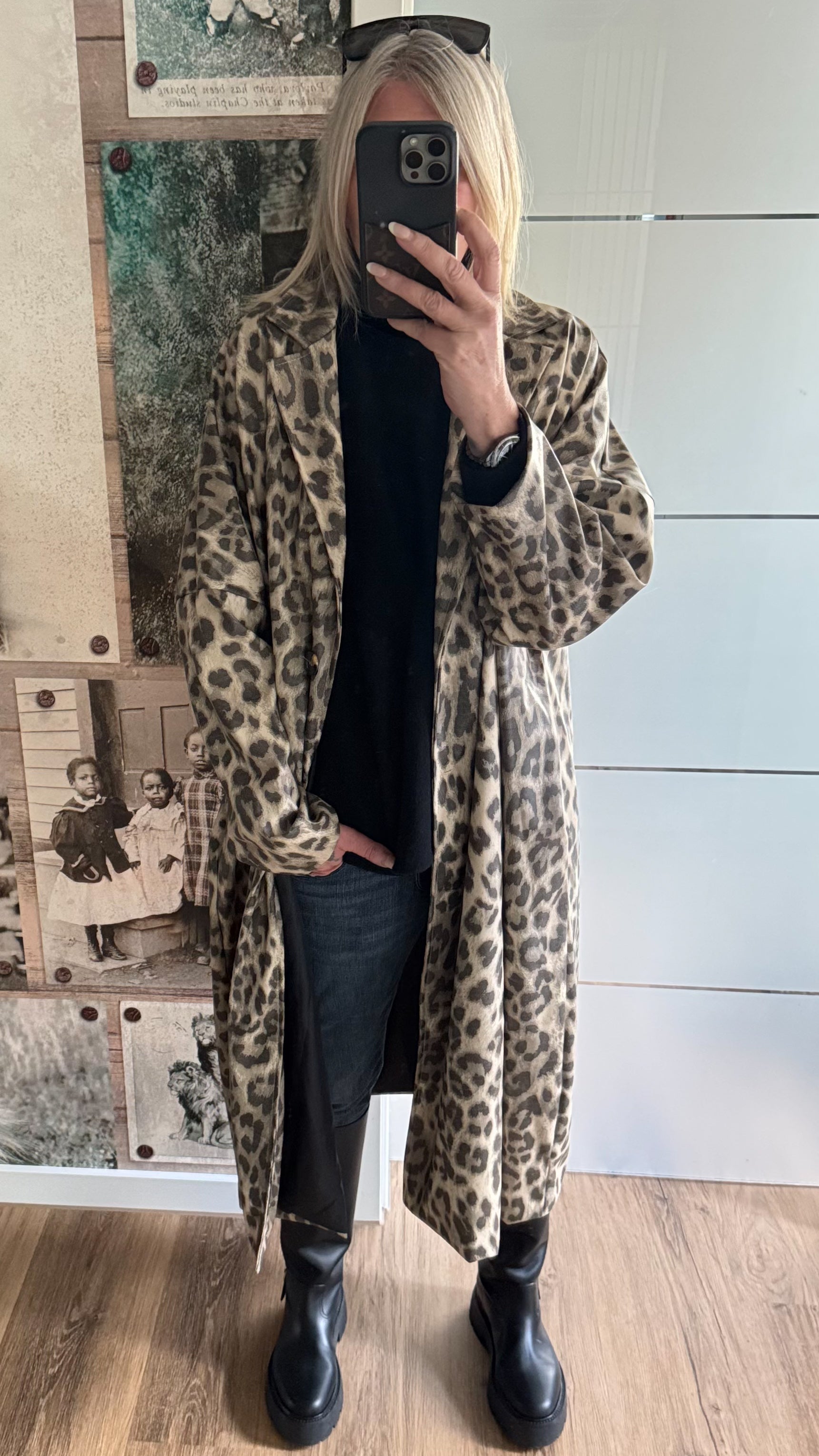Oversized leren jas, model "Animal Elegance" - beige veelkleurig