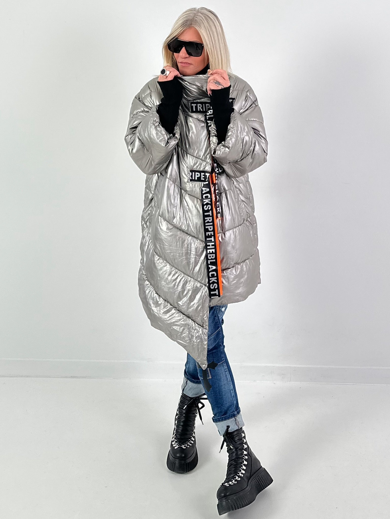 Gewatteerde jas model "Dark Orbit" - donkerzilver