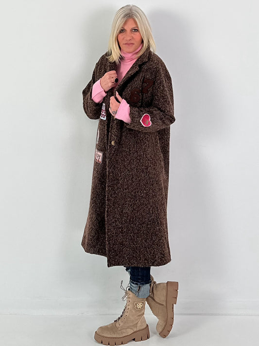 Bontjas met gebreide mouwen, model "Fluffline" - chocolade