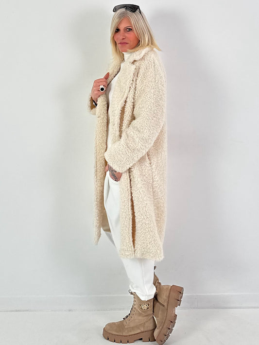 Bontjas met gebreide mouwen, model "Fluffline" - ecru