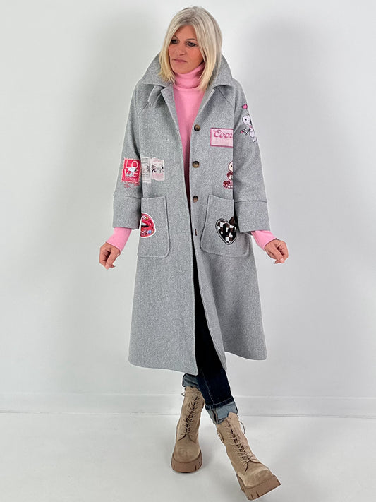 Jas met sjaal, model "Vintage Whimsy" - grijs