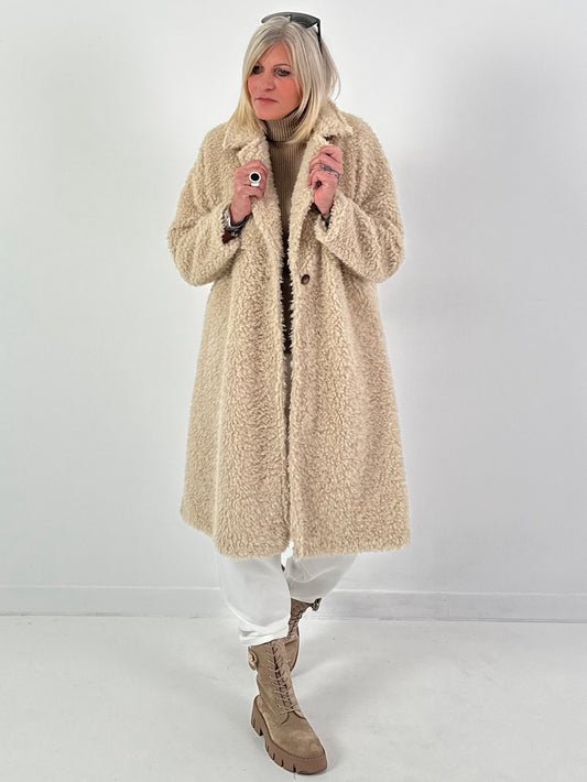 Bontjas met gebreide mouwen, model "Fluffline" - beige