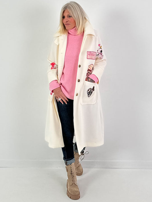 Jas met sjaal, model "Vintage Whimsy" - ecru