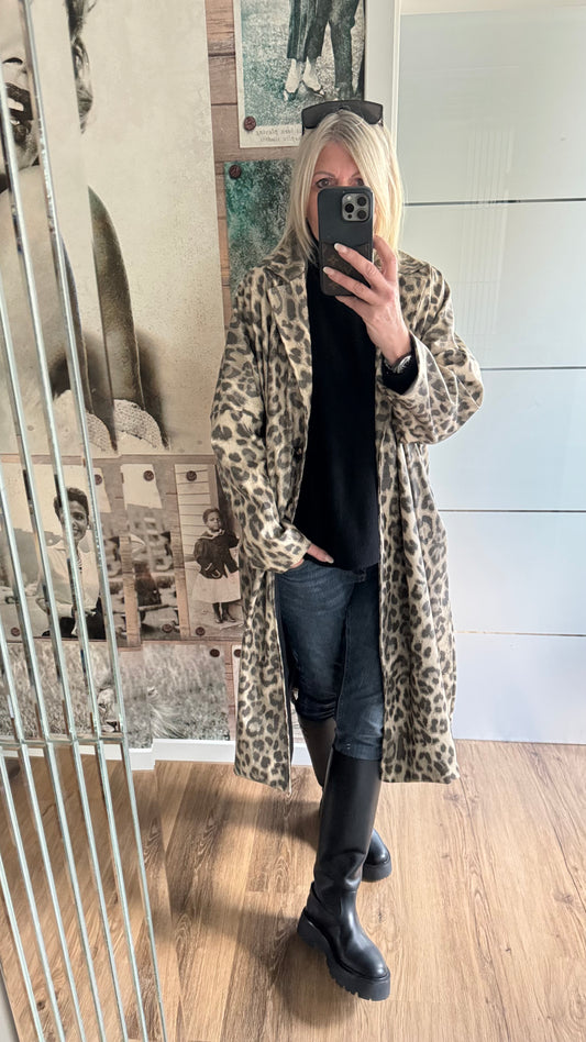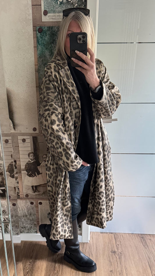 Oversized leren jas, model "Animal Elegance" - beige veelkleurig
