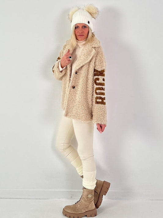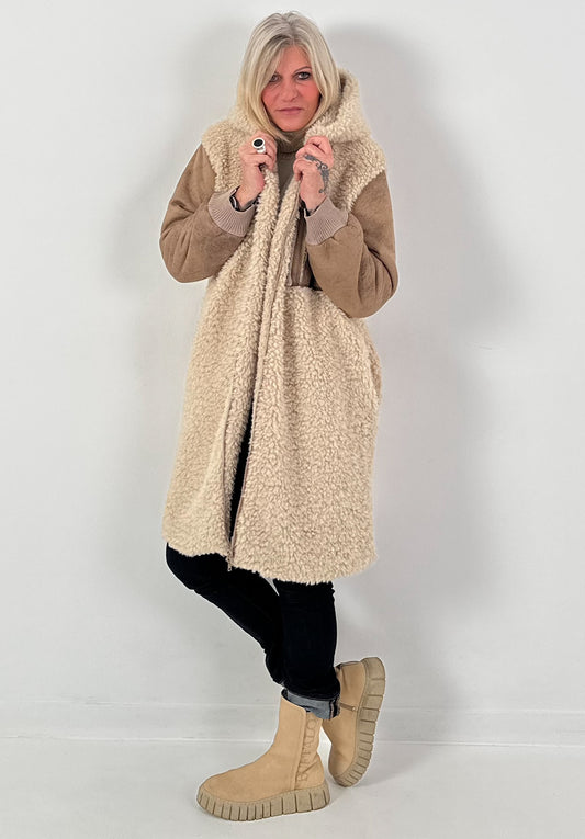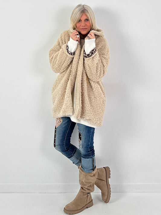Materiaalmix jas model "Wild Mood" - beige-taupe