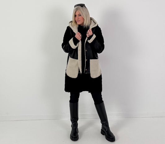 Jas van materiaalmix met capuchon, model "Nordic Blend" - zwart-beige