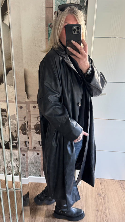 Oversized jas in lederlook, model "Darkwave" - zwartblauw