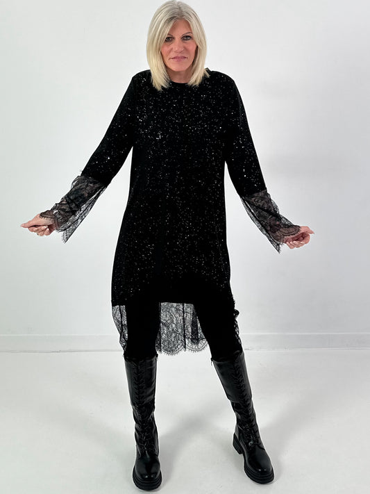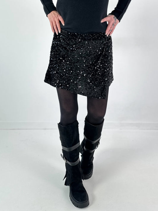 Shorts met overlay en pailletten, model "Glam Motion" - zwart