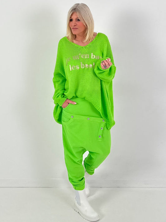 Baggy Hose Modell "Button-Belt" - apfelgrün ( lieferbar ab ca. 12.12.25)