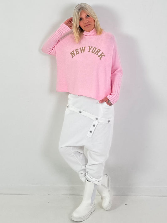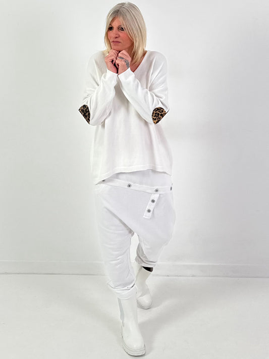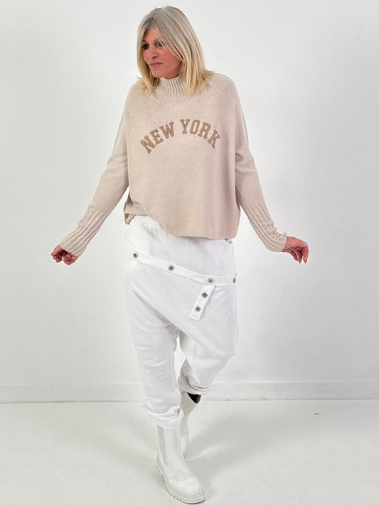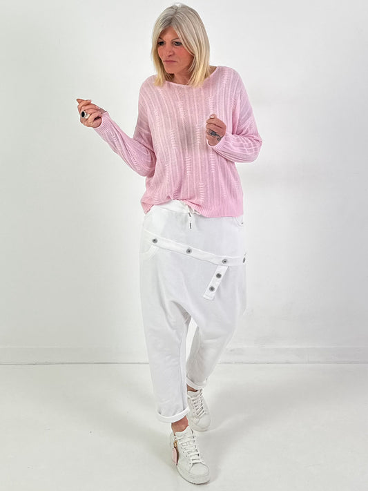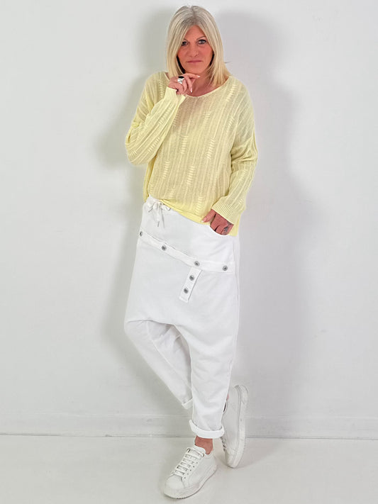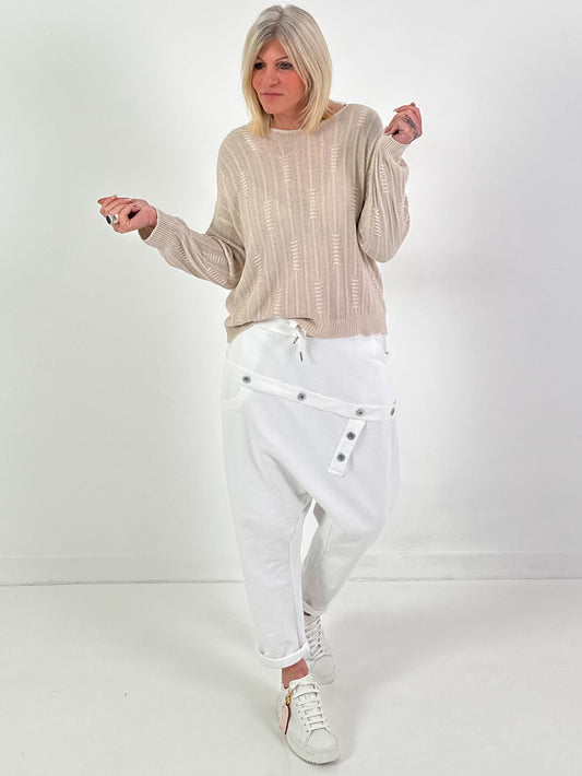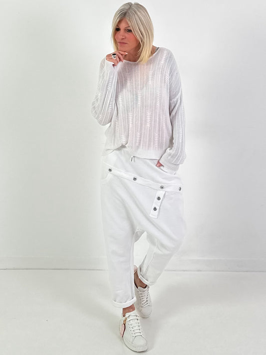 Baggy Hose Modell "Button-Belt" - weiss ( lieferbar ab ca. 12.12.25)