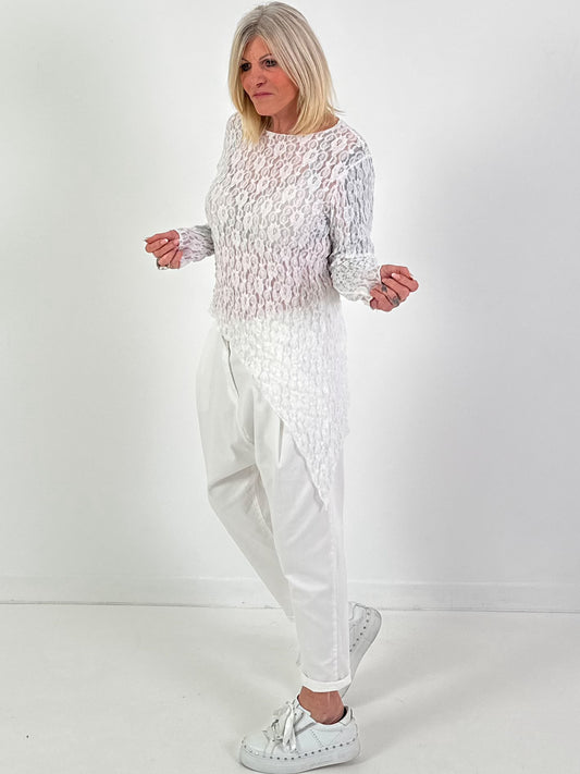 Asymmetrisches Shirt Modell "Lace Layer" - weiss ( lieferbar ab ca. 11.12.25)