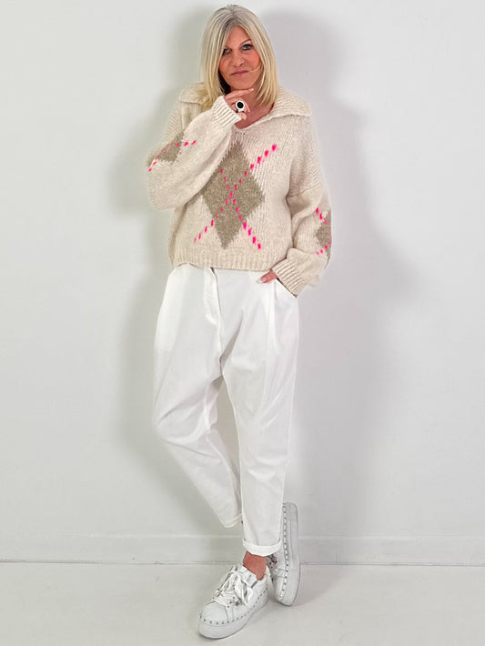 Pullover Modell "Cozy Diamond Knit" - ecru