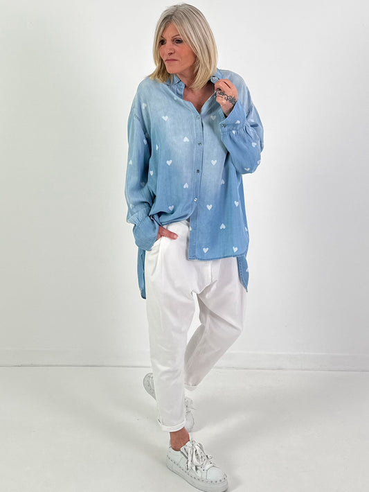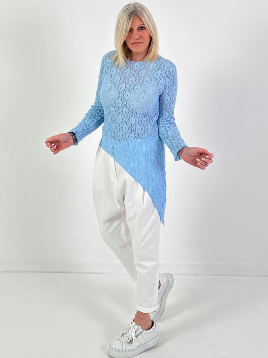 Asymmetrisches Shirt Modell "Lace Layer" - hellblau ( lieferbar ab ca. 11.12.25)