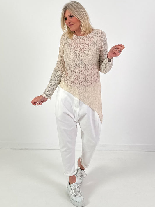 Asymmetrisches Shirt Modell "Lace Layer" - beige ( lieferbar ab ca. 11.12.25)