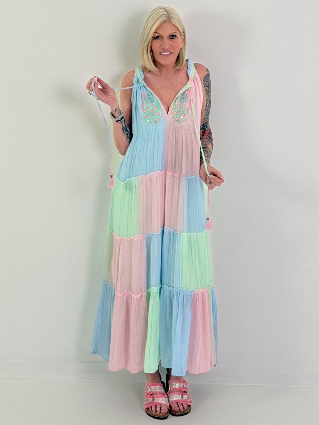 Ibiza Maxikleid - rosa-mint-hellblau