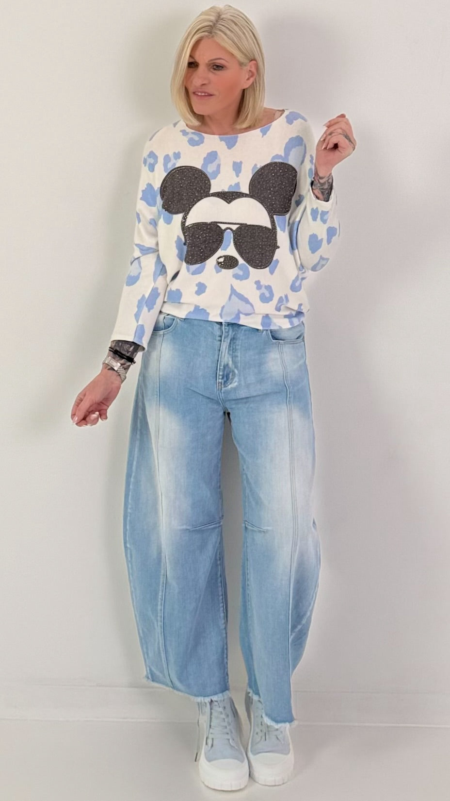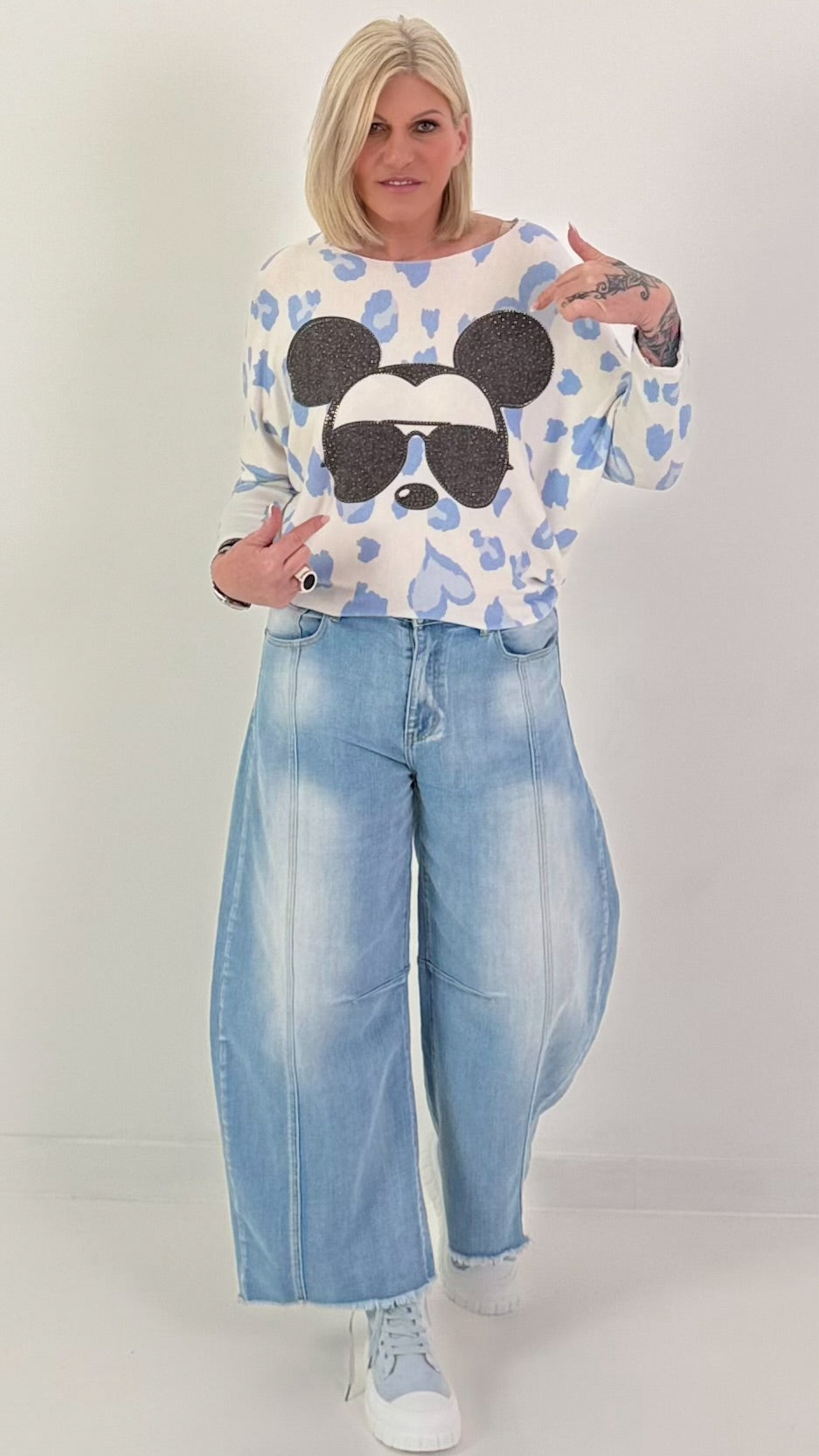 Lichtgewicht trui met all-over print - lichtblauw en wit
